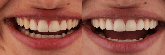 Afb. 8. Voor en na restauratie met Transcend universele composiet, kleurtint Universal Body – situatie voor de bleekbehandeling.